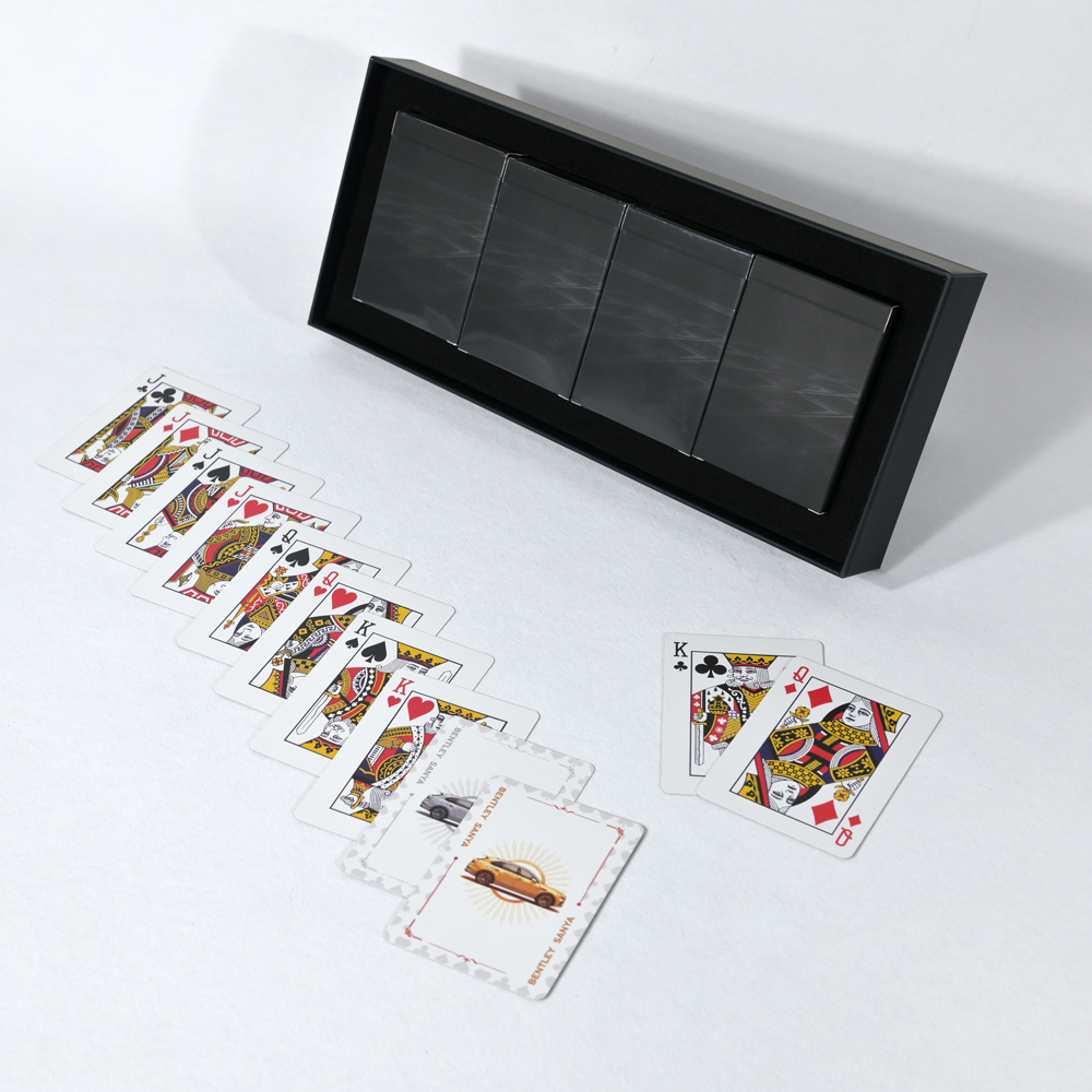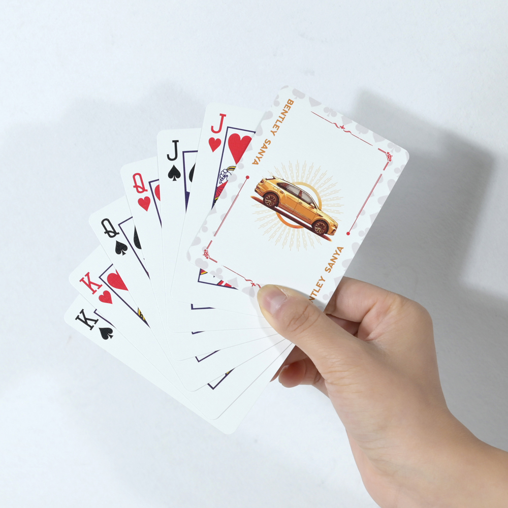 - Distinctive Card Design: The cards in Bentley Poker feature a unique design that sets it apart from other playing cards. The suits and numbers are carefully arranged, while the face cards feature bold and refined imagery. The back of each card carries an elegant and modern design with understated patterns.