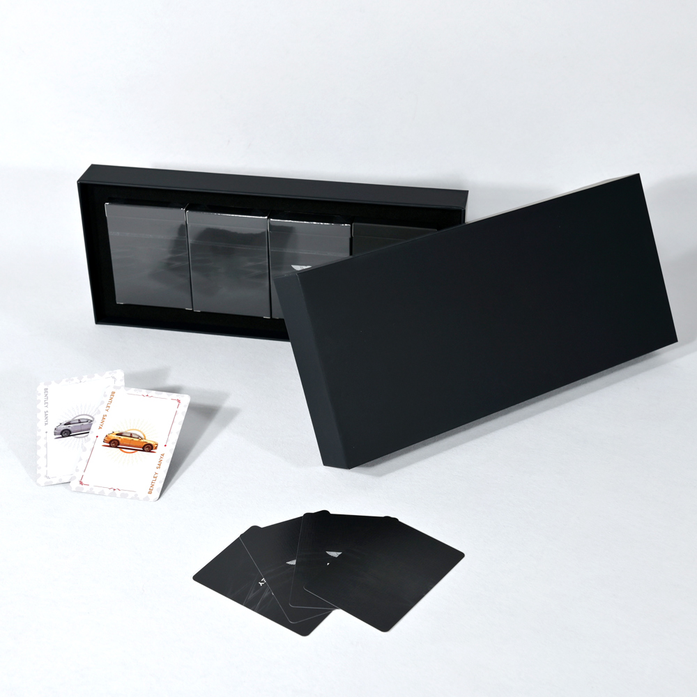 - Elegant Packaging: The Bentley Poker set comes in a sophisticated, matte black box that protects the cards while adding an extra layer of luxury. The box is both functional and stylish, making it a great display piece for your collection. It also features a secure magnetic closure that ensures the cards remain safe and secure.