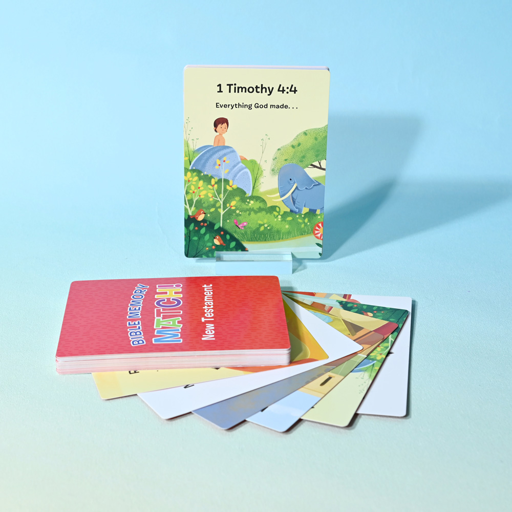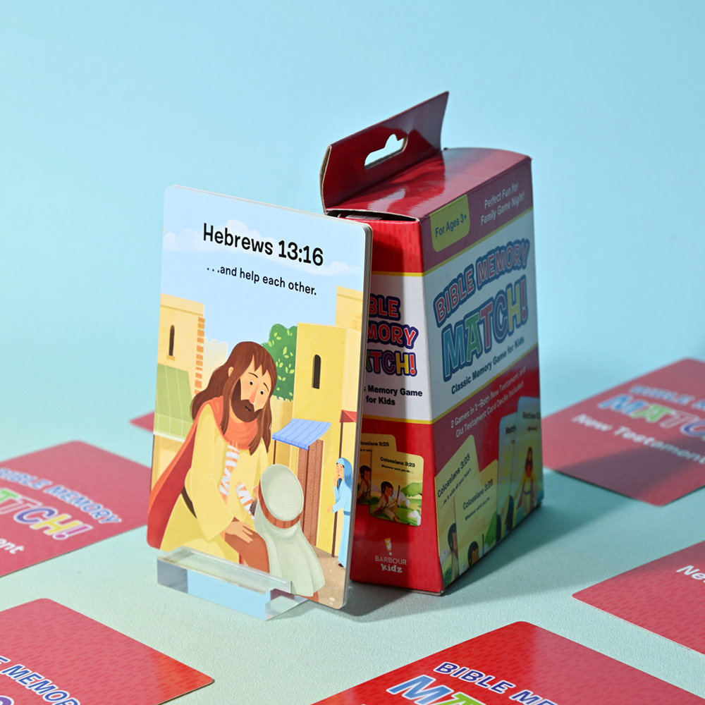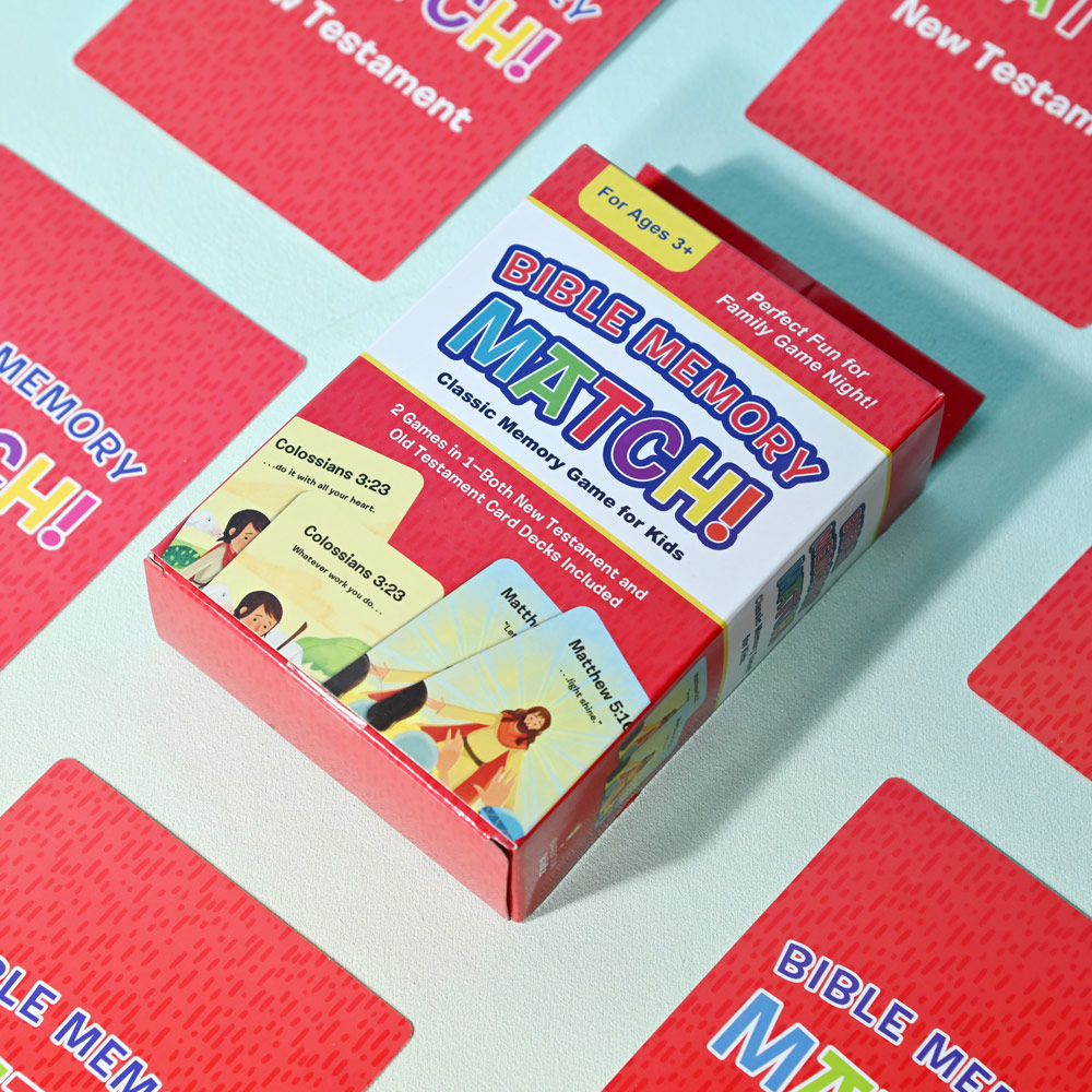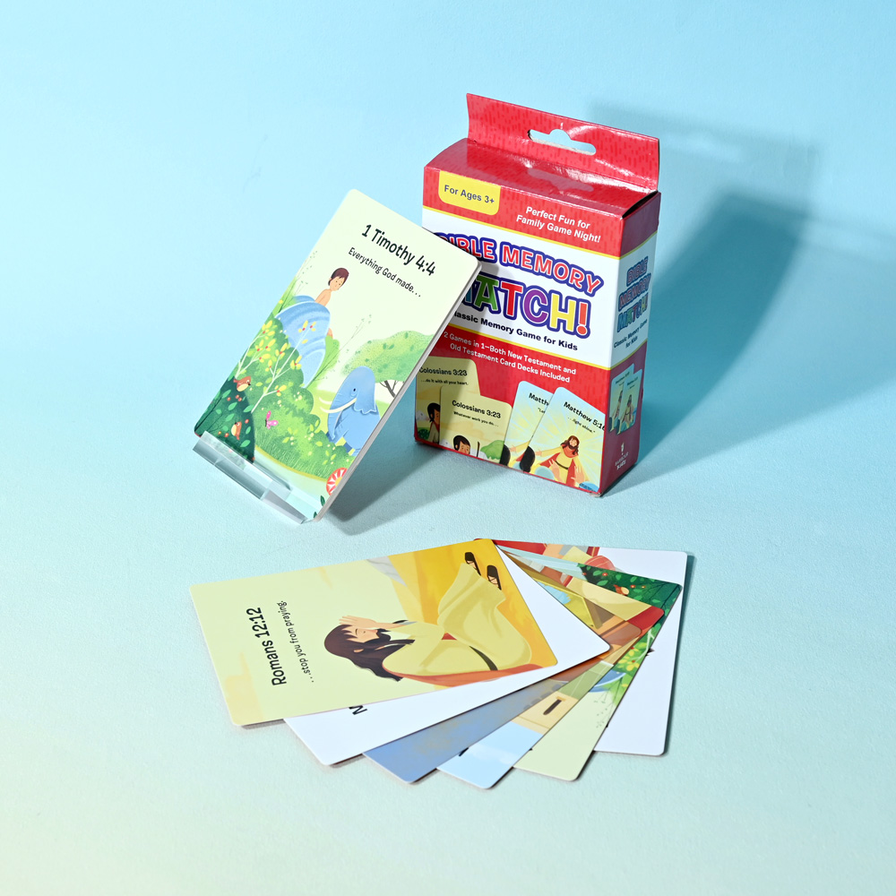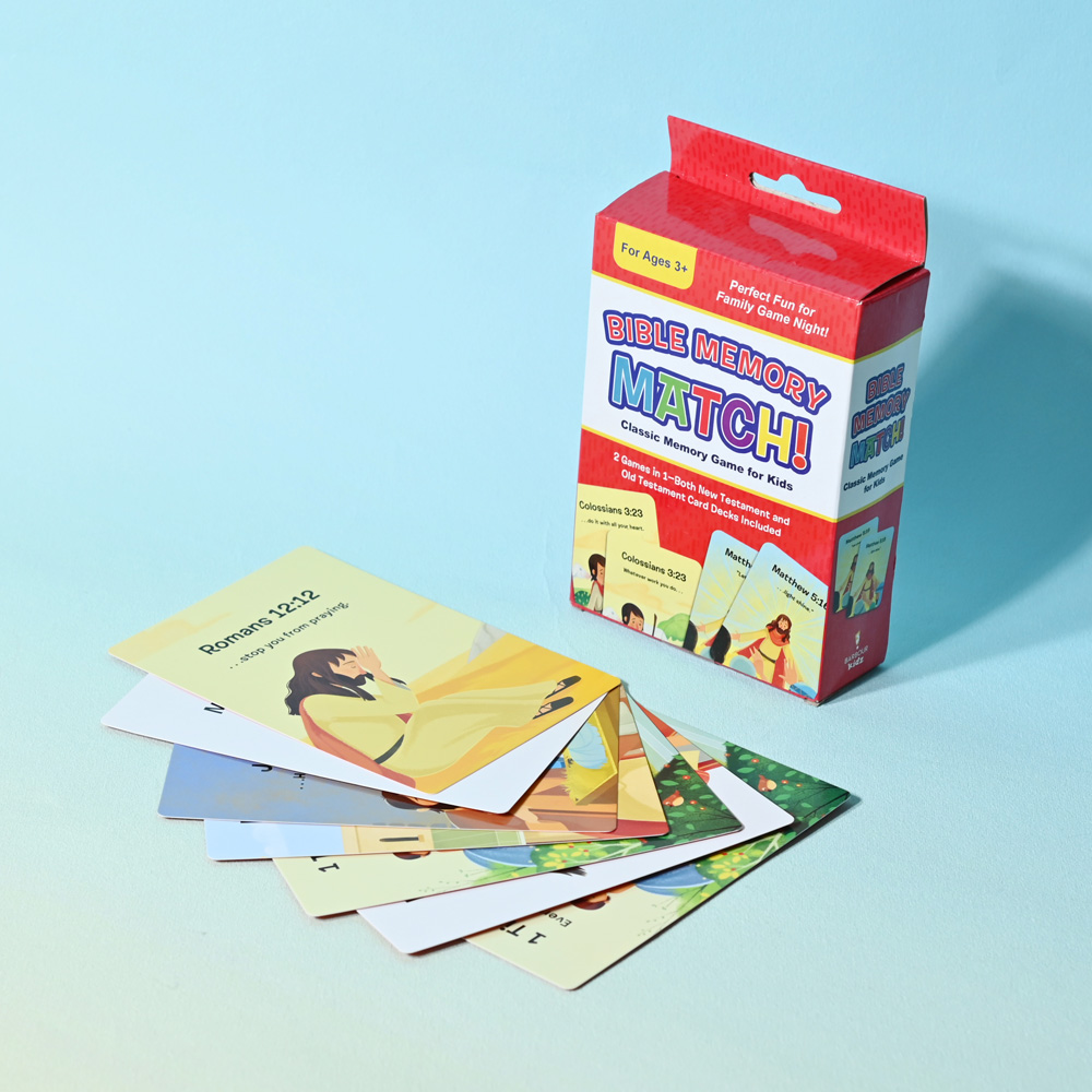 The Bible Memory Match game is a fun and engaging way for children and families to learn Bible verses while improving memory skills. With vibrant, child-friendly illustrations and scripture verses from both the Old and New Testament, this classic memory card game offers an educational and entertaining experience. Here’s a detailed product description: