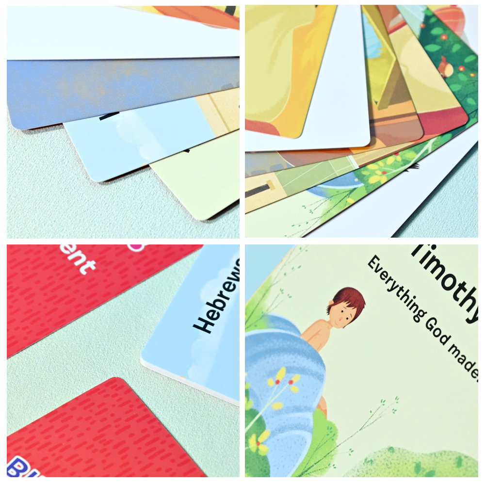 - Vibrant, Child-Friendly Artwork: Each card features colorful and engaging illustrations that visually represent the scripture, helping children connect the verse to the scene depicted. The artwork is designed to be bright and cheerful, making it appealing to younger players.