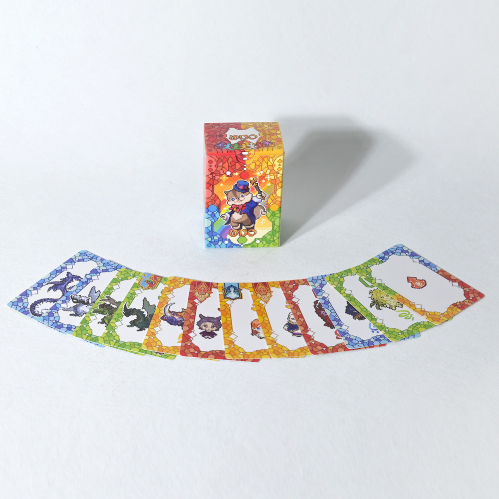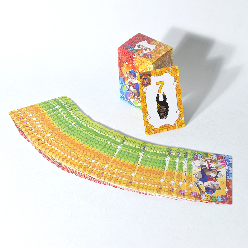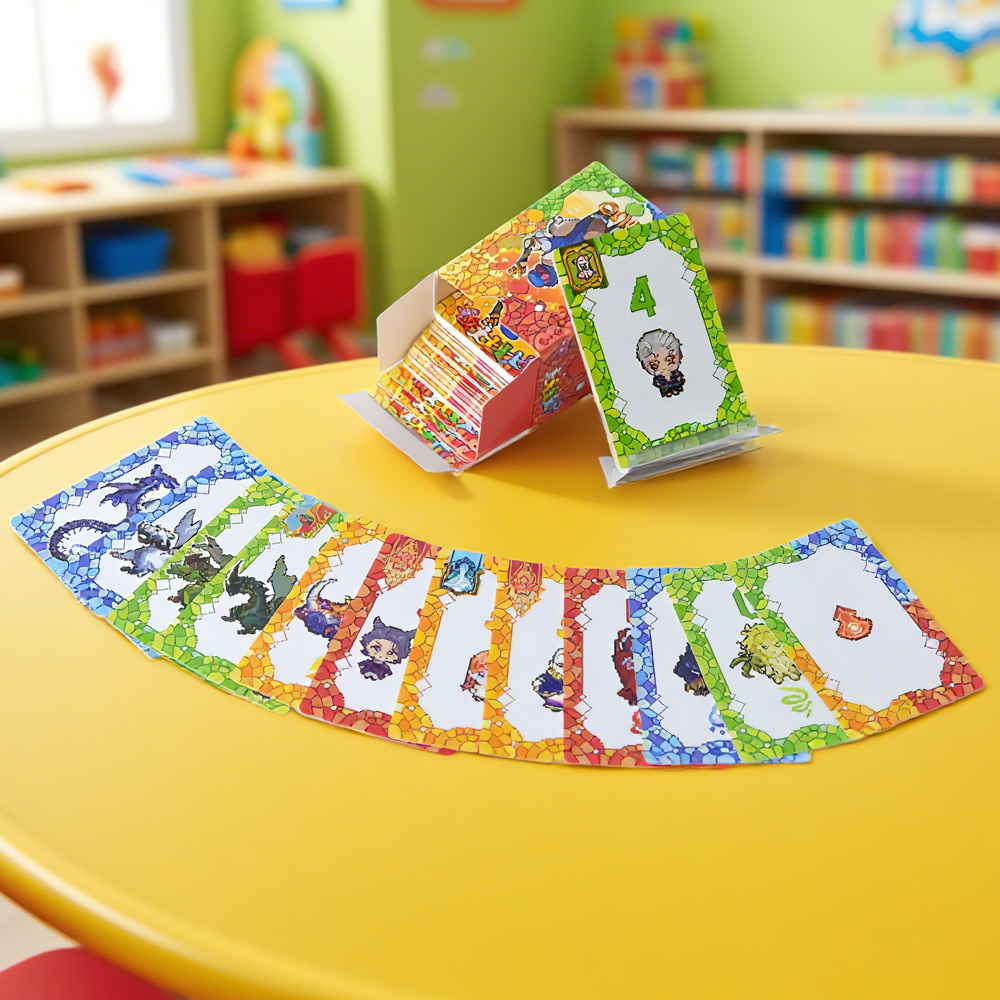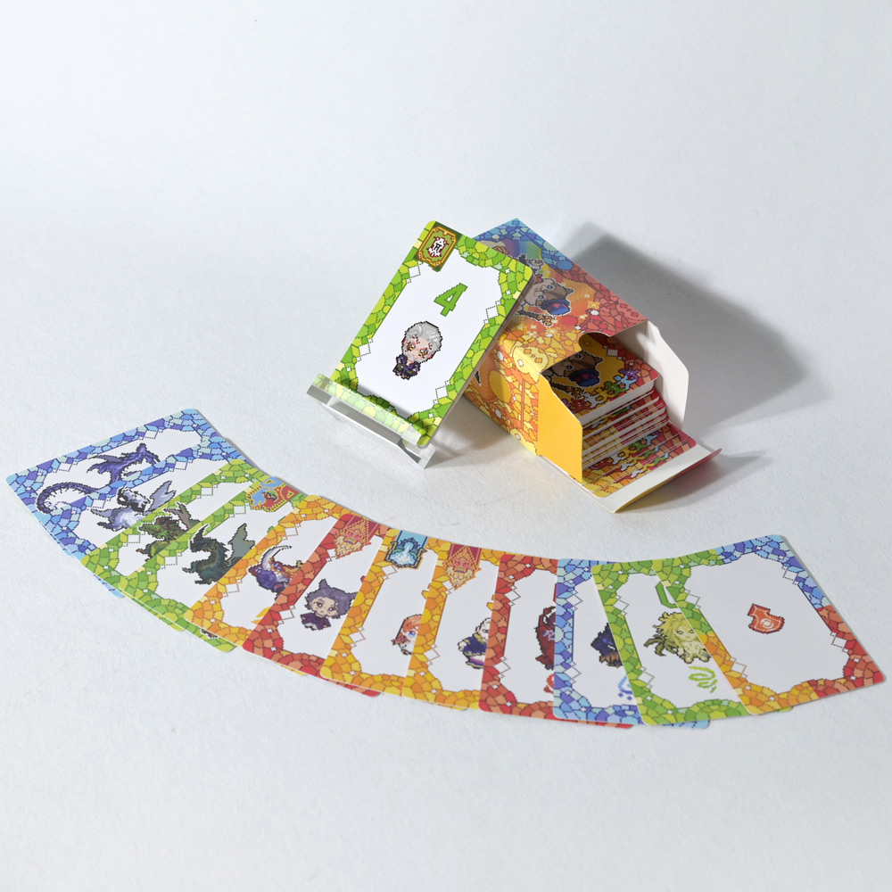 - High-Quality Art and Design: The art on the cards is vibrant, eye-catching, and crafted to enhance the experience. Each card features a colorful mosaic background and a variety of characters drawn in a charming, whimsical style. The unique artwork elevates the game's appeal, making it enjoyable not just for playing, but also for its visual delight.