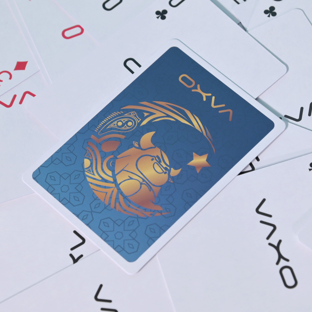 - Exquisite Design: OXVA Poker features unique artistic designs, with each card's back showcasing intricate geometric patterns and symbolic motifs, delivering a high-end and sophisticated visual appeal. The design of the cards is inspired by the fusion of modern abstract art and classic elements, reflecting a distinctive taste.